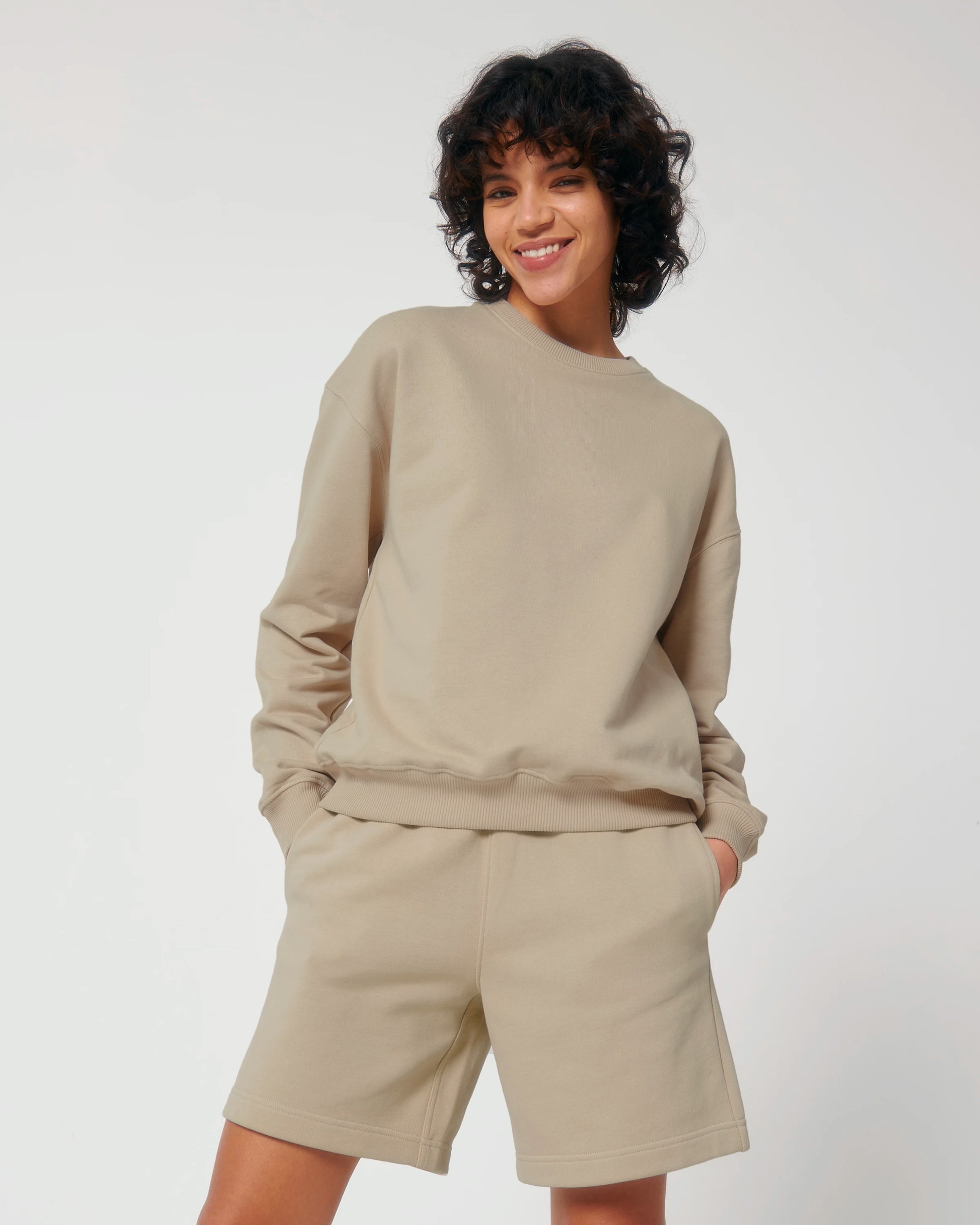 Introducing the Ledger Dry Crew Neck Sweatshirt – a blend of comfort and style with set-in sleeves, 2x1 rib, and crafted from 100% organic carded cotton French Terry. Luxuriously textured with a dry handfeel at 400 g/m², it's a versatile addition to your wardrobe.